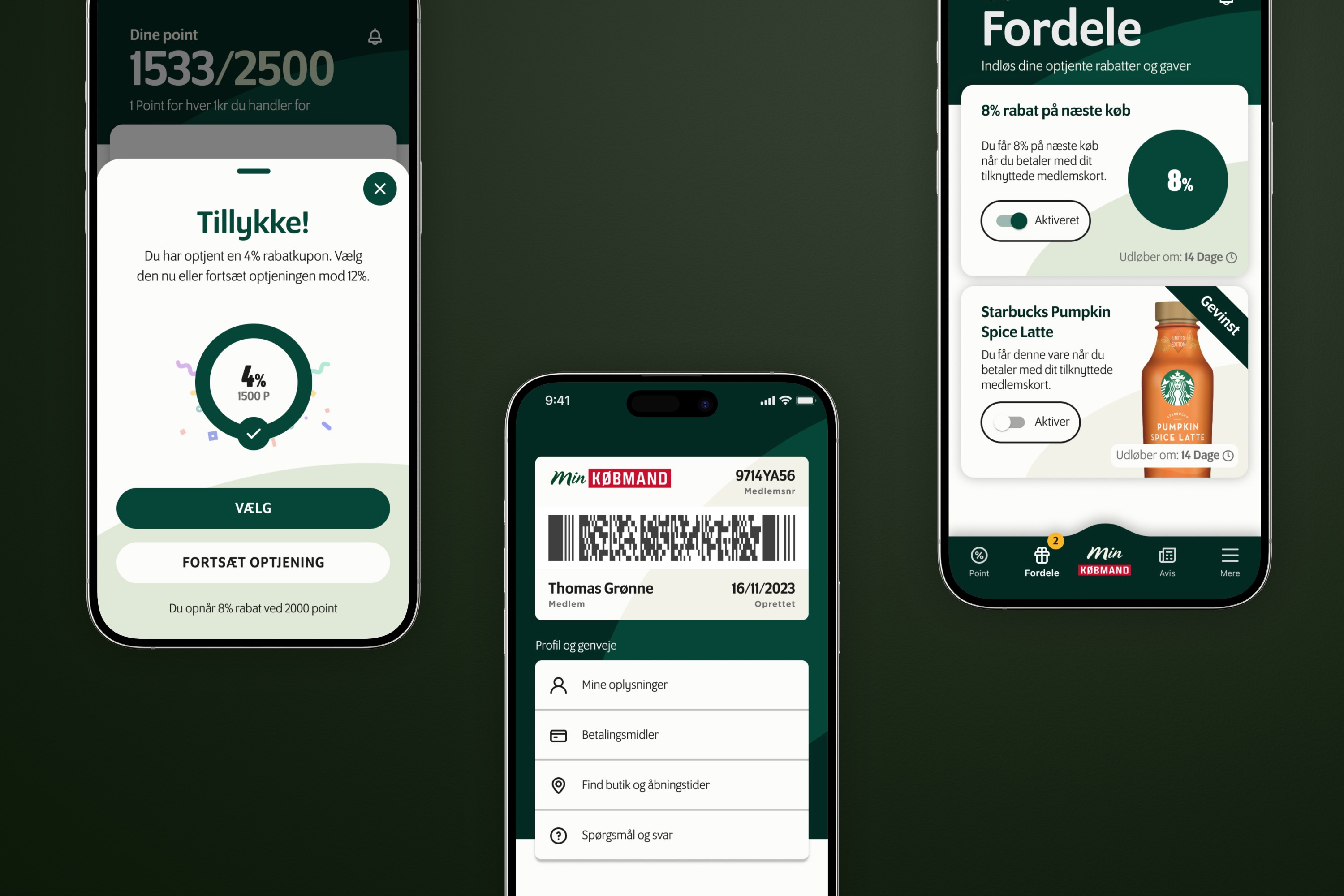 Together with my colleagues in the Experience Design team at Dagrofa, I was part of designing a customer loyality app for the small hyper-local supermarket chain Min Købmand.